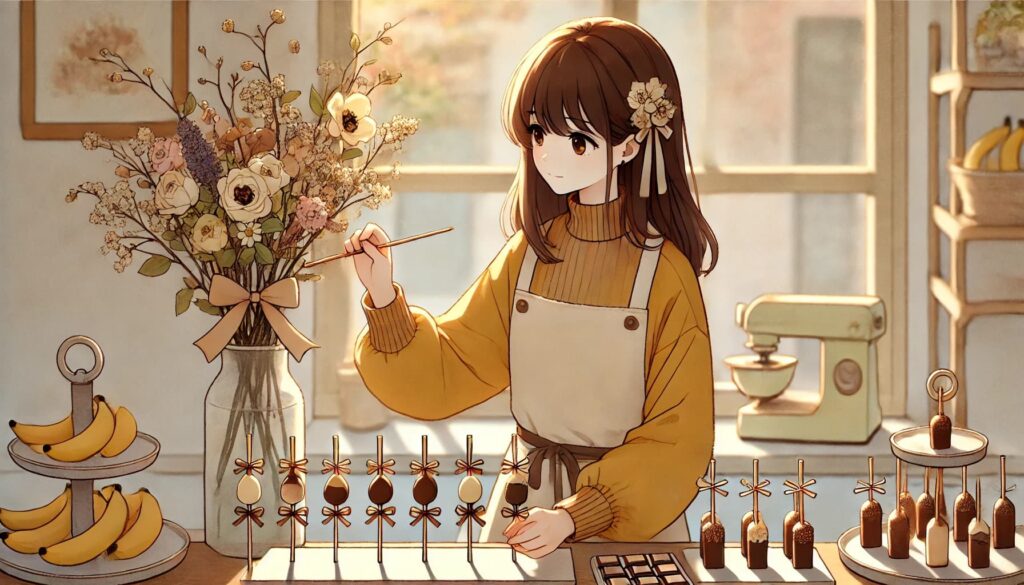 お祭り風のかわいいチョコバナナをおうちでも楽しみたい人や、イベントで大量に作りたい人にぴったりの内容です。