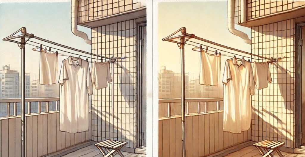 特に直射日光が当たるベランダでは、半年〜1年ほどで表面が白っぽくなったり、硬くなったりすることがあります。